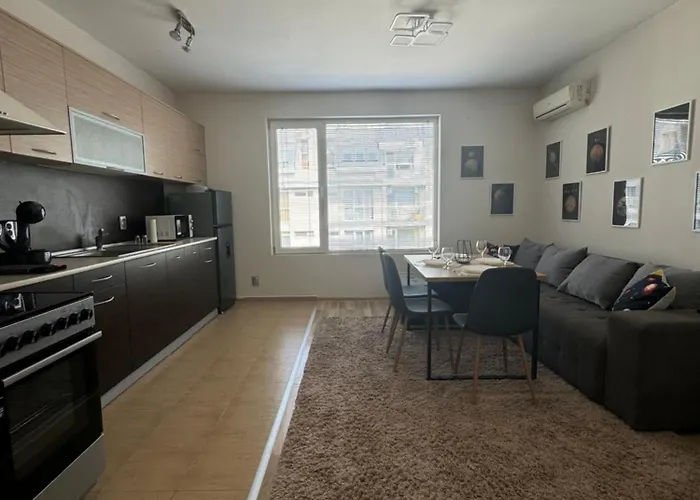 عزز إقامتك بالمطبخ الكامل المجهز بالغلاية الكهربائية وماكينة القهوة والشاي وثلاجة لراحتك في مكان الإقامة. شقة Paradise Complex بمساحة 65 مترًا مربعًا تقع على بعد 15 دقيقة بالسيارة من مطار فارنا. هناك الشرفة للاسترخاء.